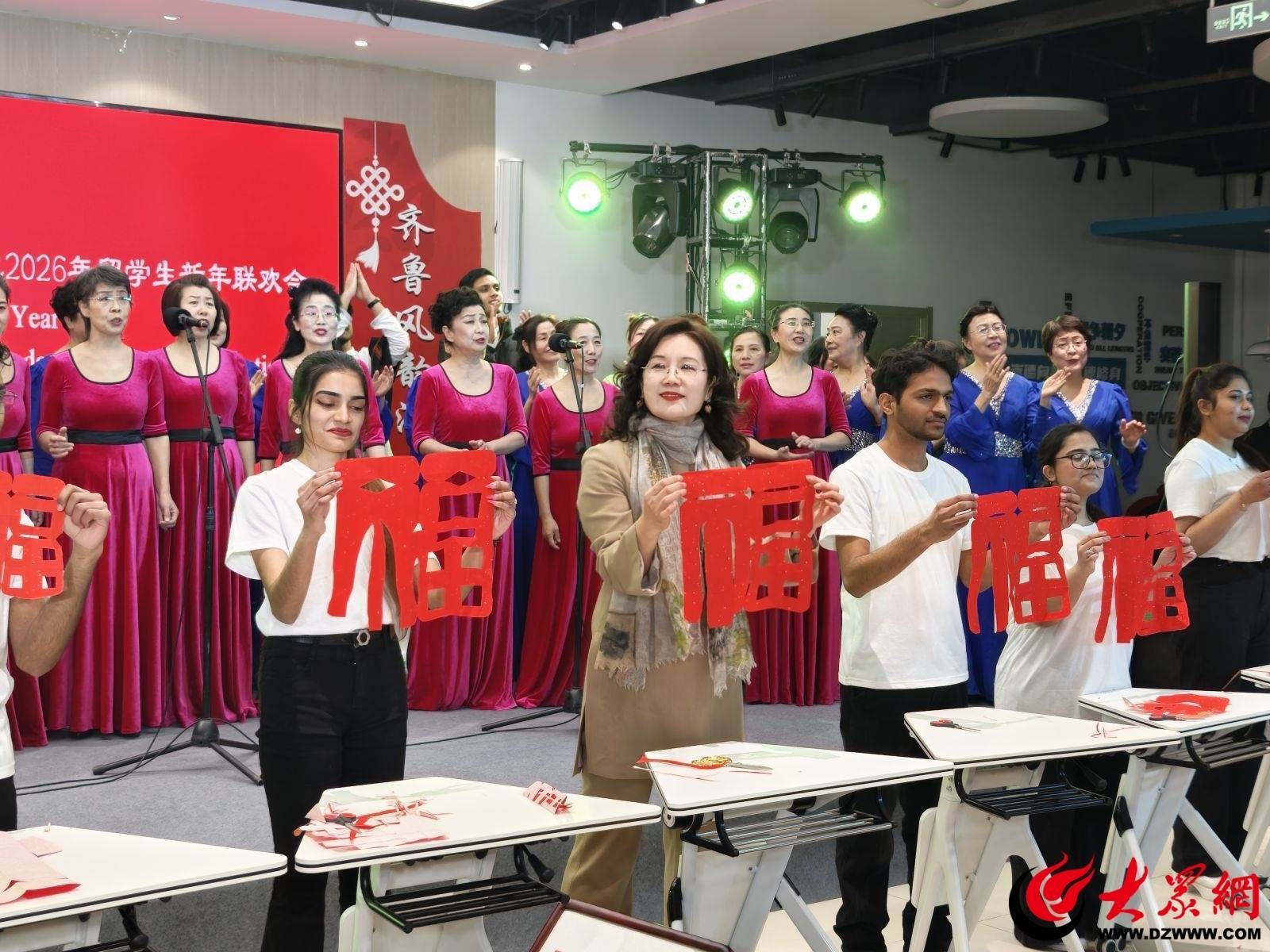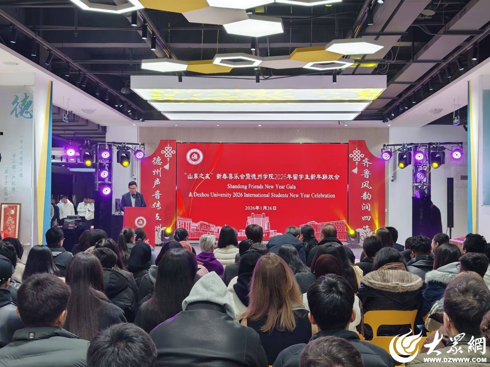 辞旧迎新岁,四海聚欢歌。1月26日,由德州学院国际教育学院主办的“山东之友”新春喜乐会暨2026年留学生新年联欢会启幕。德州学院党委委员、副校长刘印房,德州市人民政府外事办党组书记、主任张方瑞,德州市委宣传部副部长、市政府新闻办公室主任姚宁等领导莅临指导,学校相关职能部门、二级学院负责人与来自15个国家的200余名中外师生欢聚一堂,共话情谊、喜迎新春。