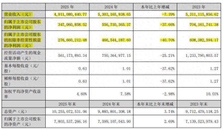 值得注意的是,这已是公司归母净利润连续第三年下滑。2023年、2024年,公司归母净利润分别为7.04 亿元、5.57亿元,同比分别下降58.46%、20.94%。