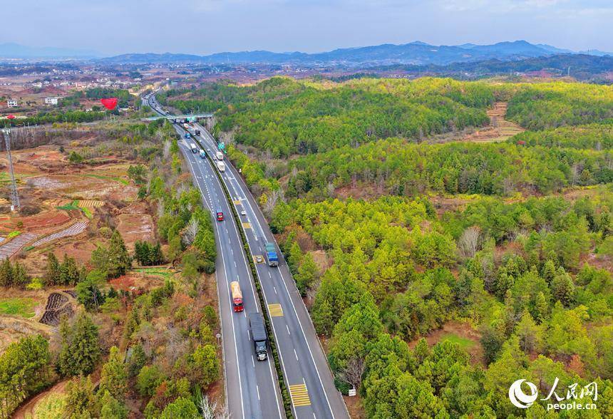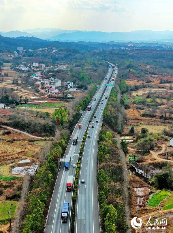 抚州市广昌县甘竹镇龙溪村,济广高速公路上的货车往来疾驰,货运繁忙有序。人民网记者 朱海鹏摄人民网广昌2月11日电 (记者朱海鹏)近日,江西省抚州市广昌县甘竹镇龙溪村,济广高速公路上的货车往来疾驰,货运繁忙有序。