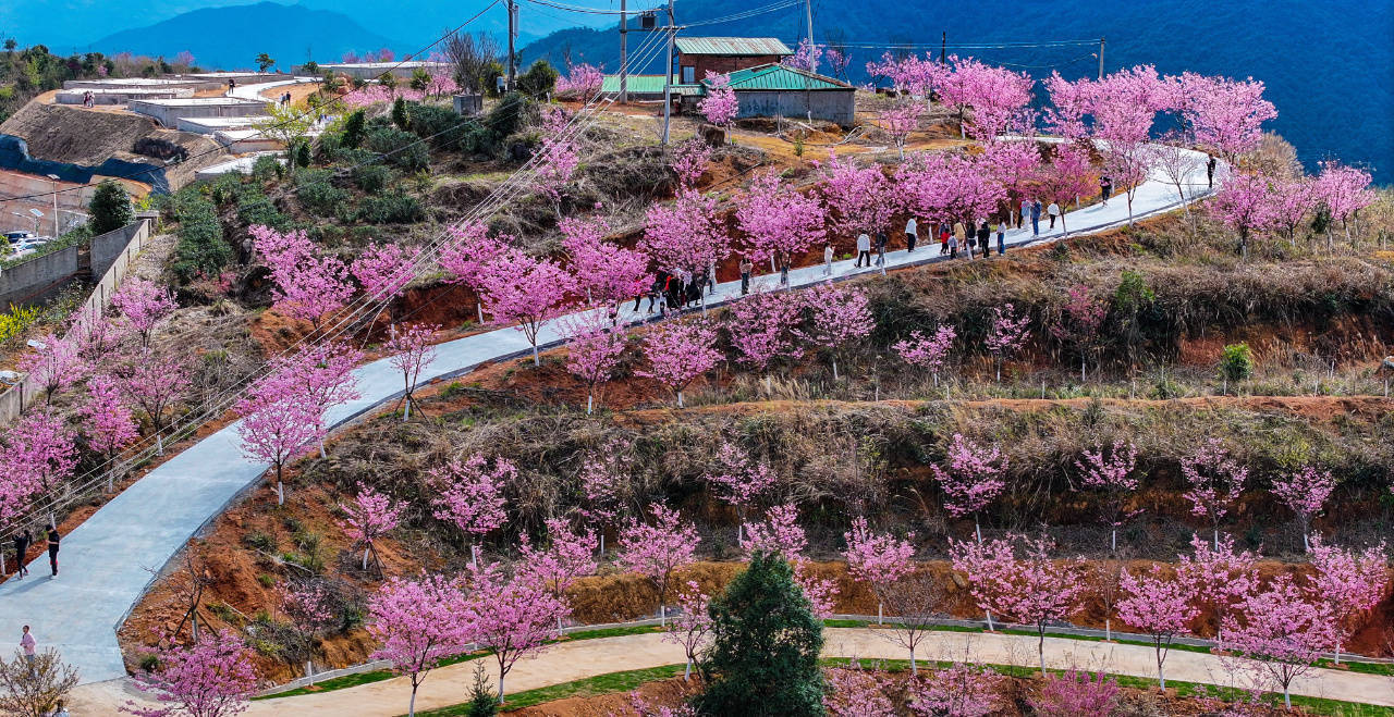 作为长卿镇重点打造的文旅休闲地标,凤髻尖综合旅游休闲区近年来持续完善基础设施建设,3公里长的蜿蜒步道串联起整片樱林,让游客能够沉浸式感受花海魅力。此次盛开的樱花包含“中国红”“粉红佳人”等多个品种,暖阳透过枝叶缝隙洒在粉嫩的花瓣上,泛着温柔光泽。微风拂过,樱瓣簌簌飘落,轻拂肩头、漫过发梢,空气里弥漫着清甜香气与新春暖意。