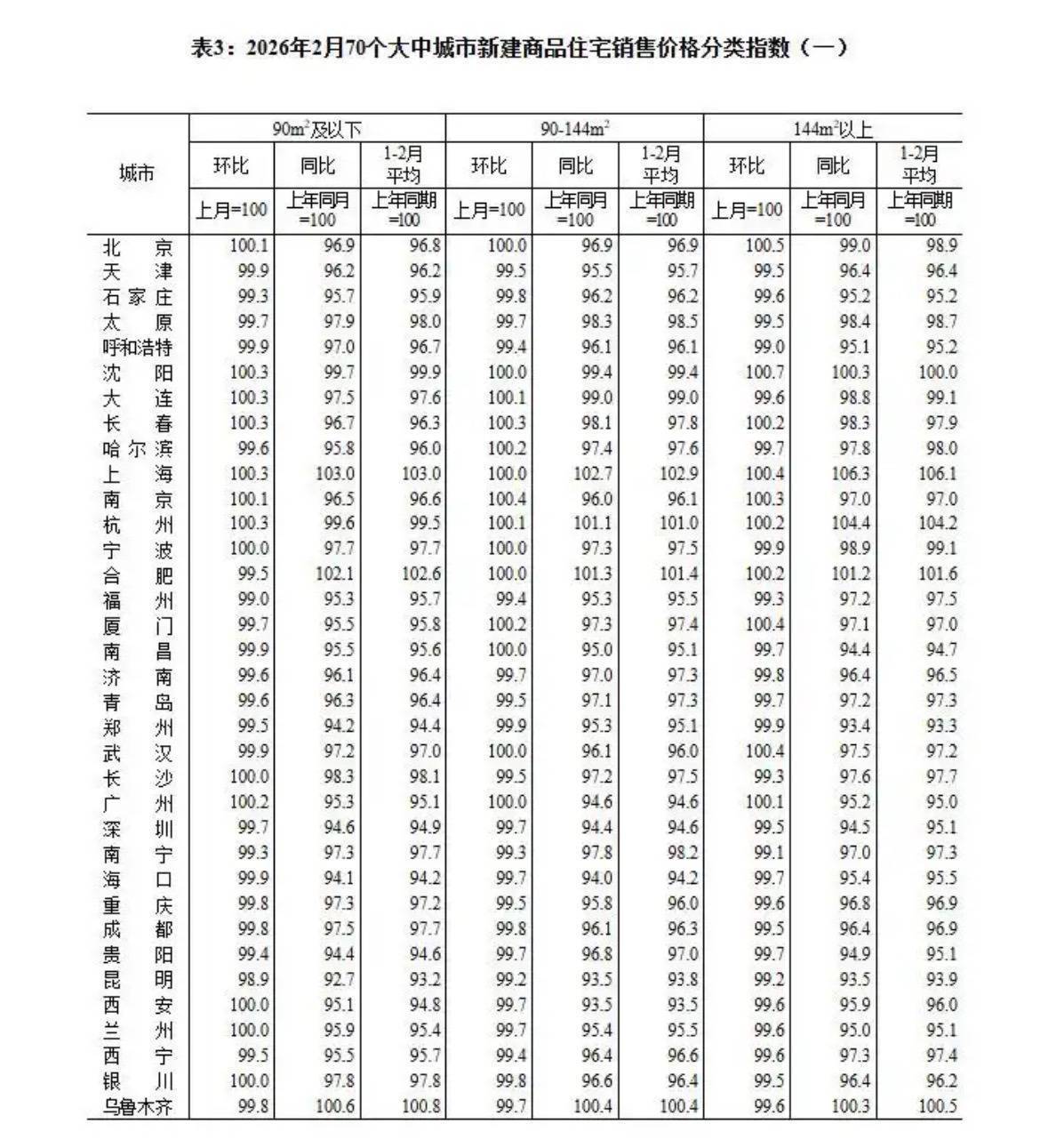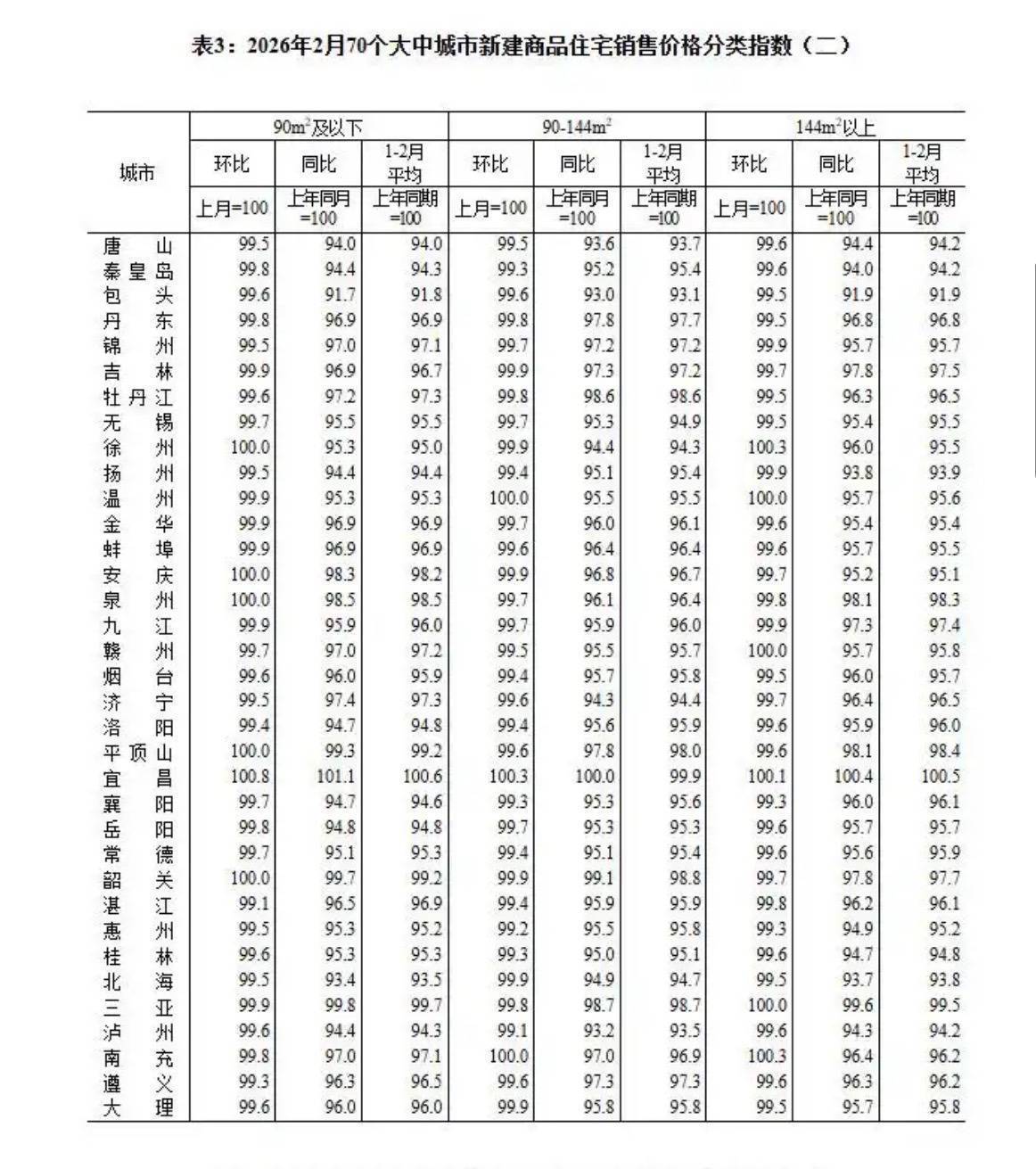 2月份70个大中城市商品住宅销售价格指数