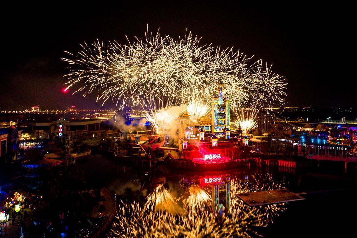 作为本次新春活动的重头戏,“奇梦城堡烟花光影秀”从大年初一至正月十五,持续15天燃放。夜幕降临,“星云会馆”城堡在数万名游客的期待中化身巨型光影画布,将古城墙的沧桑、诸葛亮的智谋、米芾书法的神韵、金庸笔下郭靖守城的侠义精神徐徐展现,襄阳2800年历史文脉呼之欲出,伴随如星河倾落的绚丽烟花,点亮城市夜空。更融合国家级非遗“水上火龙钢花”,当炽热的铁水被击打升空,瞬间化作漫天璀璨的金色星雨,部分铁水洒落湖面,激起一片跳跃的“火树银花”,与城堡光影、空中烟花共同构成“水、陆、空”三维交织的视觉奇观。现场惊叹声与快门声此起彼伏,许多家庭游客驻足良久,父母将孩子扛在肩头,共同记录这震撼一幕。